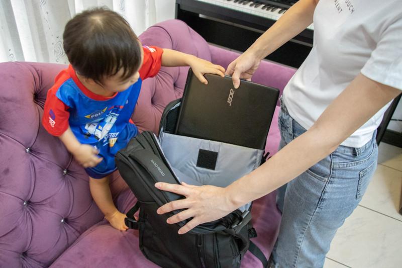 Nazoroad Alter後背包正常容量為26L,但是只要你輕輕地把拉鍊往兩側拉開,包包容量就可以瞬間升級(最大容量36L),這點對女王來說真的是超級實用,因為寶寶現在出門帶上些尿布、換洗衣物後幾乎就會佔去包包一半的容量,但這個設計讓女王可以輕鬆塞下,所有寶寶雜七雜八的東西,真的是非常人性化的設計耶!