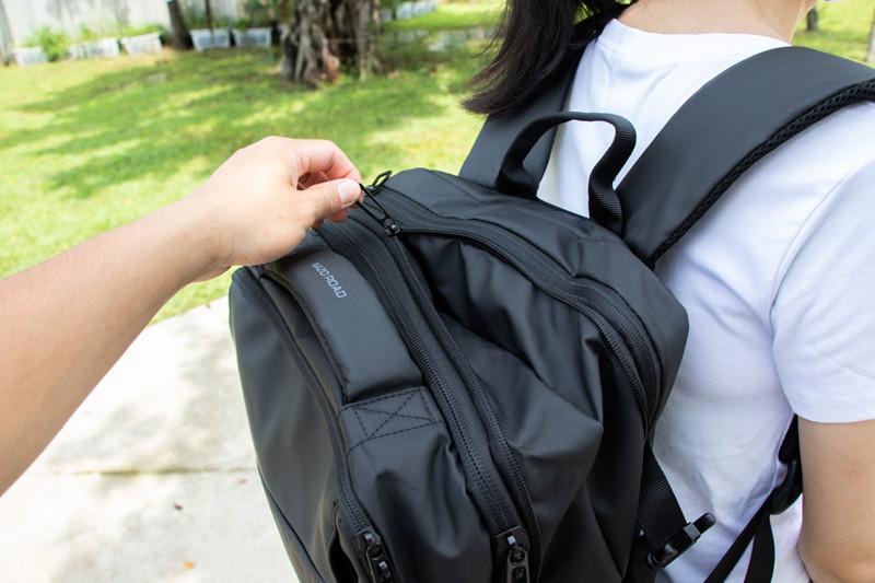 Nazoroad Alter後背包專為通勤族、旅行族設計,表面覆有防水復合面料,像最近這種陰雨不定的陣雨(小中雨)天氣就非常適合使用,更採用了PU面料讓整體質感更加提升。