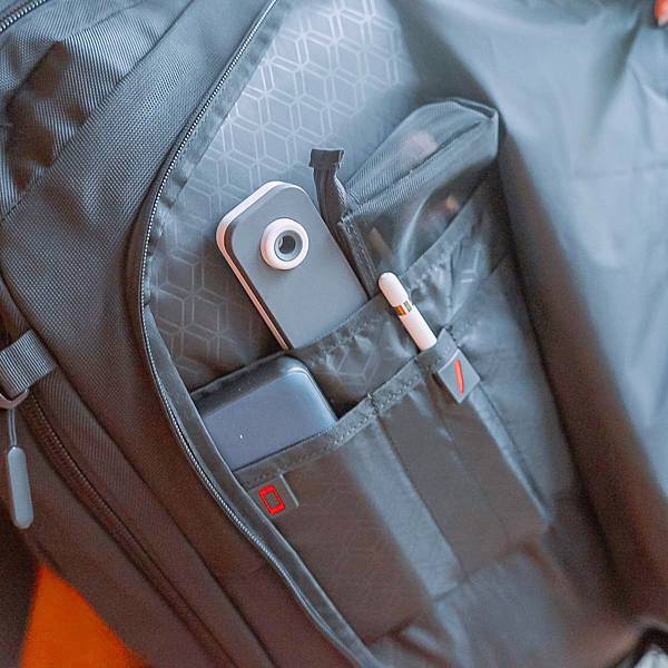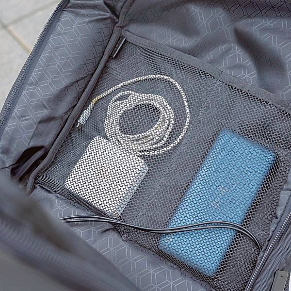 邊走邊充的同時,可將行動電源放在主袋層的內網