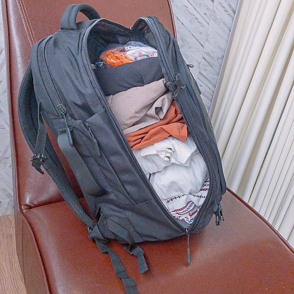 核心主袋空間十分足夠,夏天可裝滿16件、大概是8套服裝
