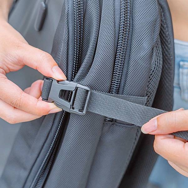 背包四周的活動扣環,可將背包固定在需要尺寸